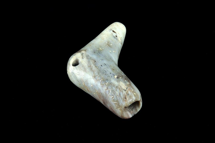 Por su parte, la flauta cerámica de la colección se distingue no solo por ser la única de este material sino también la única de forma globular encontrada hasta la fecha en territorio diaguita. Desarrollado por los incas (1100-1500 d. C.) en la zona de Cusco, este tipo de flauta se rige por el principio de la digitación simétrica, que permite tocar con ambos dedos pulgares.