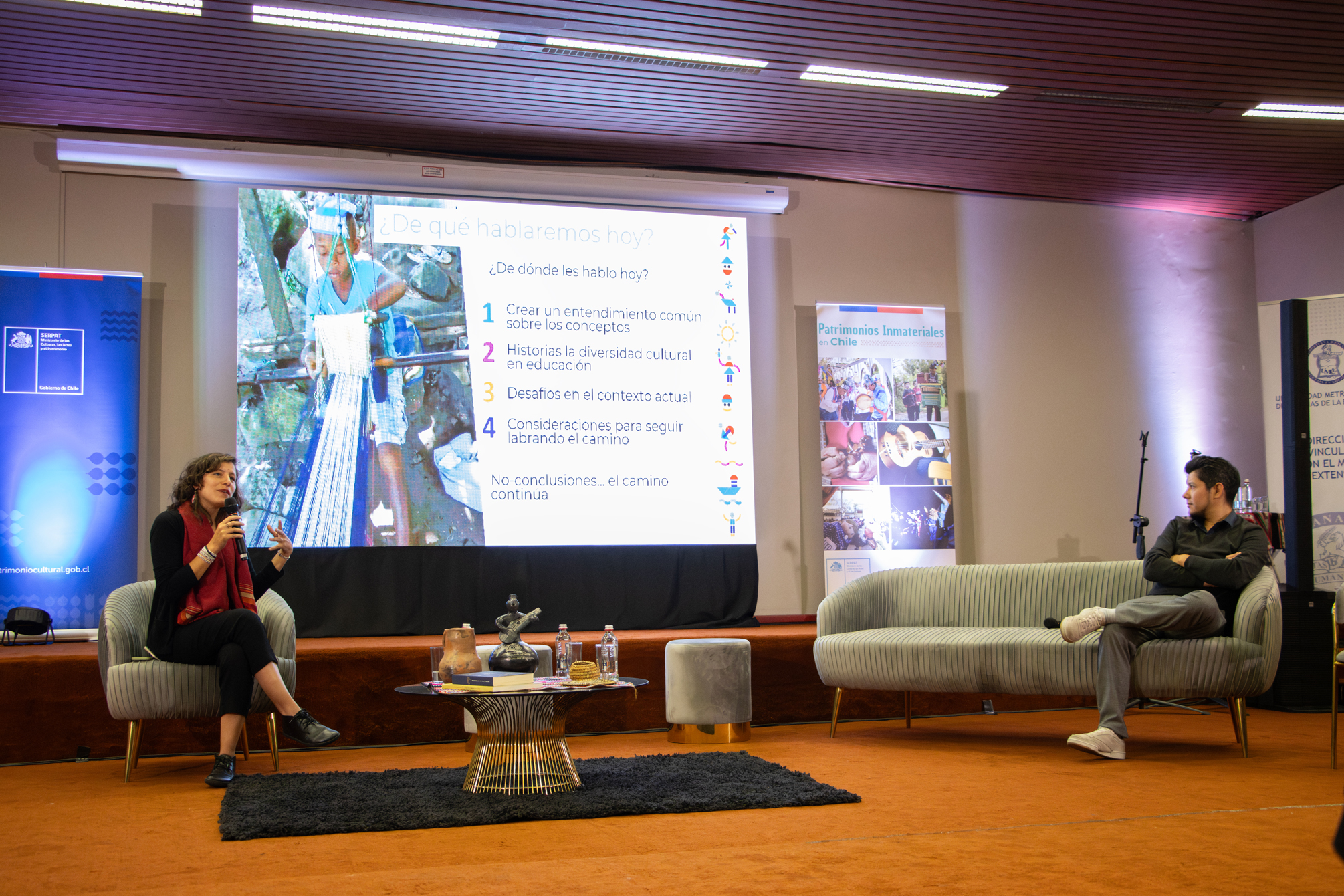 Un componente clave fue la generación de espacios de debate a través de paneles y conversatorios, que permitieron profundizar en los desafíos pedagógicos y políticos del Patrimonio Vivo. Entre los temas centrales que convocaron a especialistas, portadores y educadores, se destacó el análisis de "La educación patrimonial en la formación inicial de pedagogos y educadoras/es de párvulos", y las discusiones en torno a "Políticas de Educación Patrimonial" y las "Herramientas metodológicas para el diseño de experiencias educativas contextualizadas". Estos diálogos reforzaron el compromiso con la integración del patrimonio vivo en el aula.